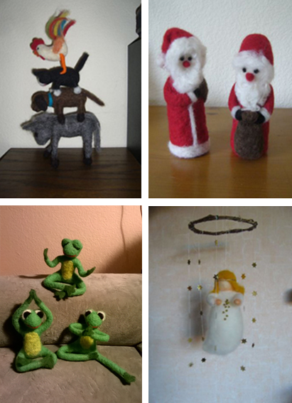 Es gibt immer eine Gelegenheit, sich an den Figuren zu erfreuen. Der Kreativität sind keine Grenzen gesetzt. Marienkäfer, Osterhasen, Märchenfiguren, Zwerge, Pilze oder die heilige Familie sind nur einige wenige Beispiele, die Wolle in Szene zu setzen. Die fertigen Filzarbeiten eignen sich zum Spielen oder einfach als Dekoration.